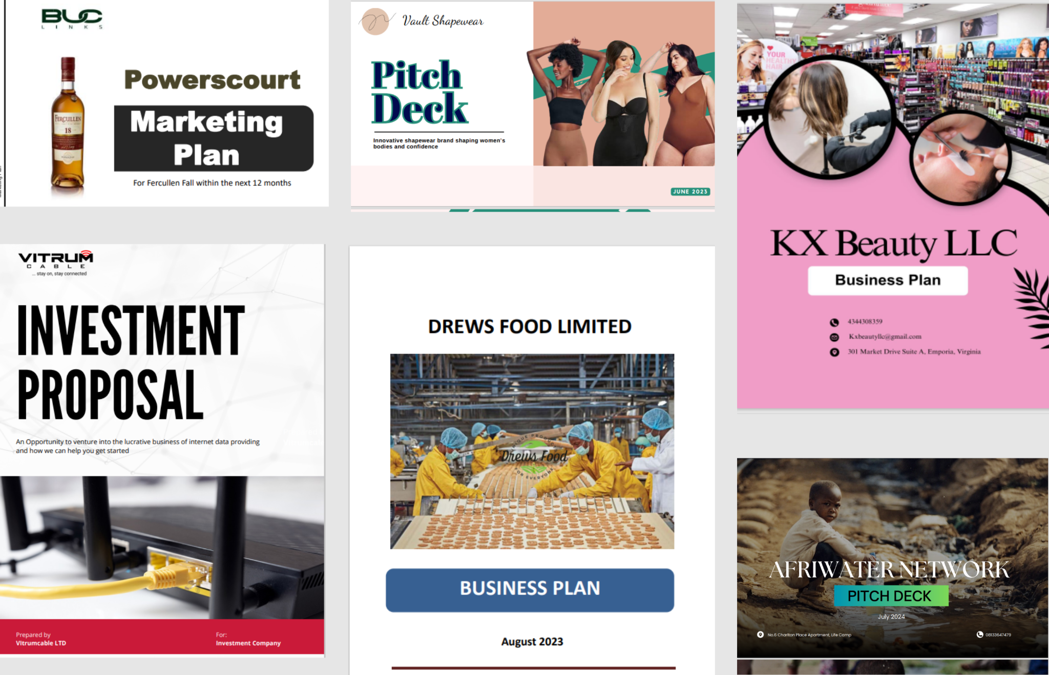 At the core of my work is a simple goal: turning ideas into structured, fundable, and scalable businesses. I achieve this by developing compelling Business Plans, Pitch Decks, Proposals, and Corporate Documents that don’t just inform, but persuade, position, and drive results.