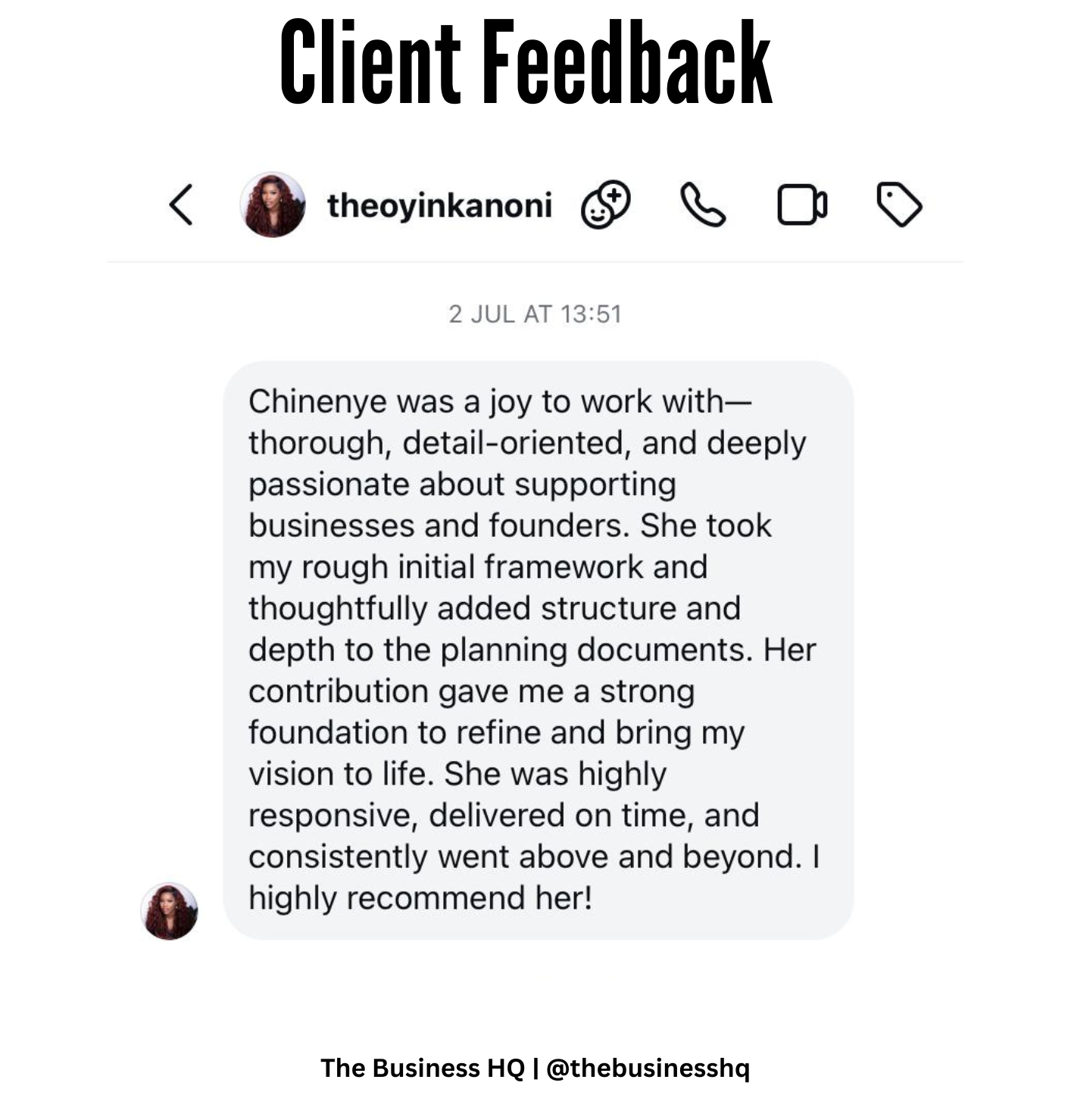 Beyond documentation, I operate as a hands-on Business Consultant, supporting organizations across key functional areas including Human Resources, Accounting, Marketing, and overall Business Growth. I work closely with founders and teams to build systems, refine operations, and create strategies that are both practical and scalable.
